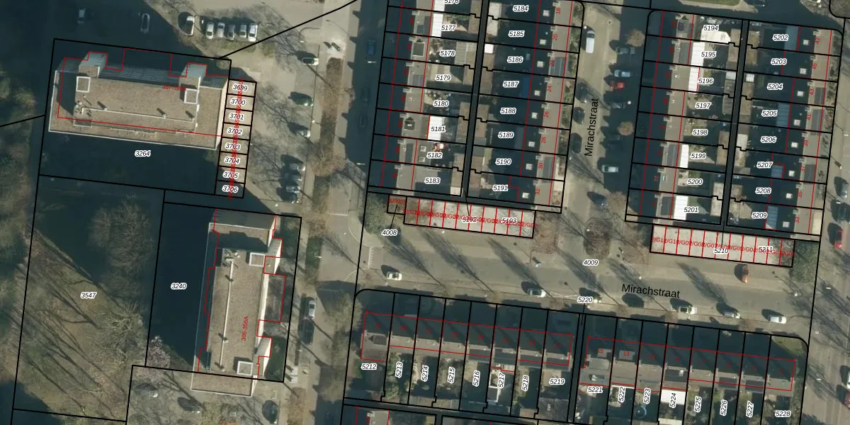 Mirachstraat 32-G09 is gelegen op kadastraal perceel WSL01L5193. Deze kadastrale aanduiding is uniek en wordt gebruikt door het Kadaster om eigendomsrechten en andere zakelijke rechten vast te leggen. Het perceel maakt onderdeel uit van de kadastrale gemeente Woensel.
