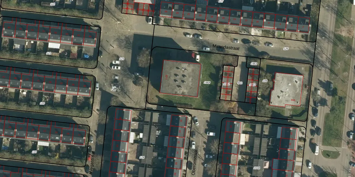 Het perceel waarop Mirandastraat 15 staat heeft een oppervlakte van 1550 m². Dit is een zeer groot perceel. De perceeloppervlakte wordt geregistreerd door het Kadaster. Gedetailleerde informatie over de maten van dit perceel kunt u vinden in het rapport Kadastrale kaart met maatvoering van Mirandastraat 15.