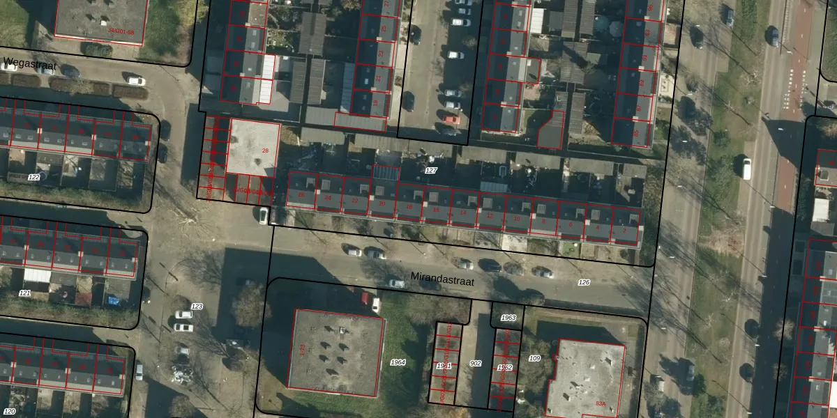 Mirandastraat 18 is gelegen op kadastraal perceel WSL01M127. Deze kadastrale aanduiding is uniek en wordt gebruikt door het Kadaster om eigendomsrechten en andere zakelijke rechten vast te leggen. Het perceel maakt onderdeel uit van de kadastrale gemeente Woensel.