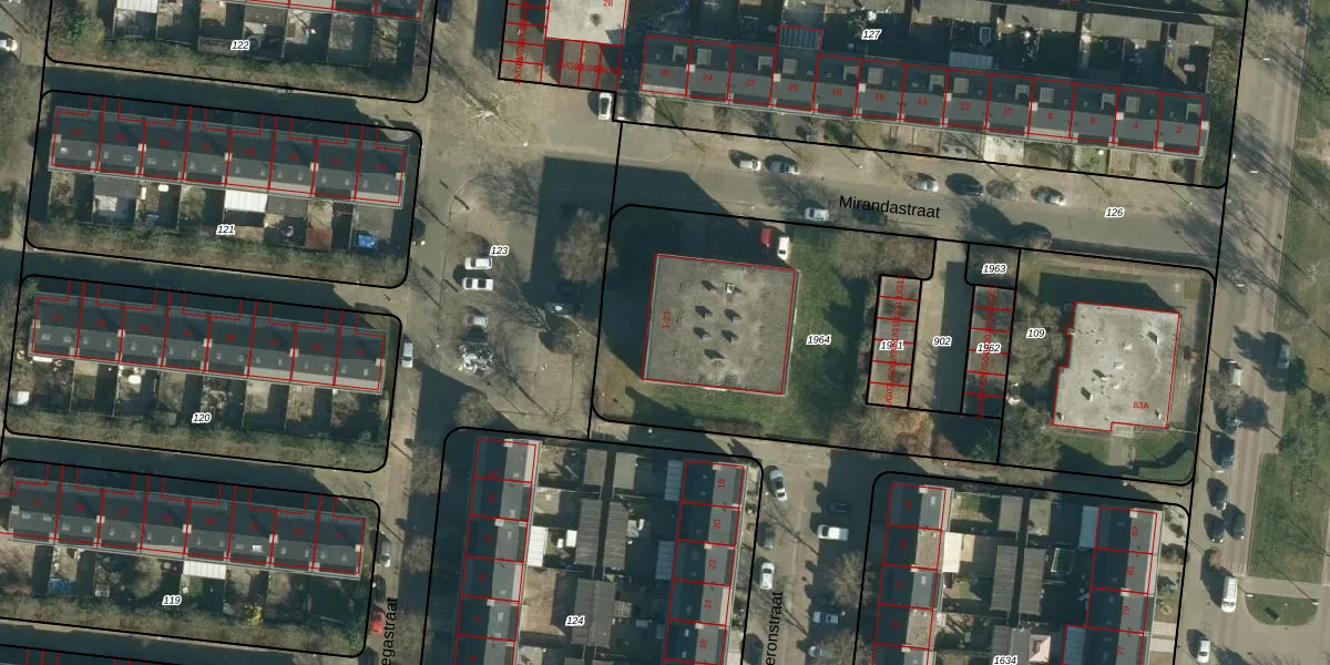 Het perceel waarop Mirandastraat 5 staat heeft een oppervlakte van 1550 m². Dit is een zeer groot perceel. De perceeloppervlakte wordt geregistreerd door het Kadaster. Gedetailleerde informatie over de maten van dit perceel kunt u vinden in het rapport Kadastrale kaart met maatvoering van Mirandastraat 5.