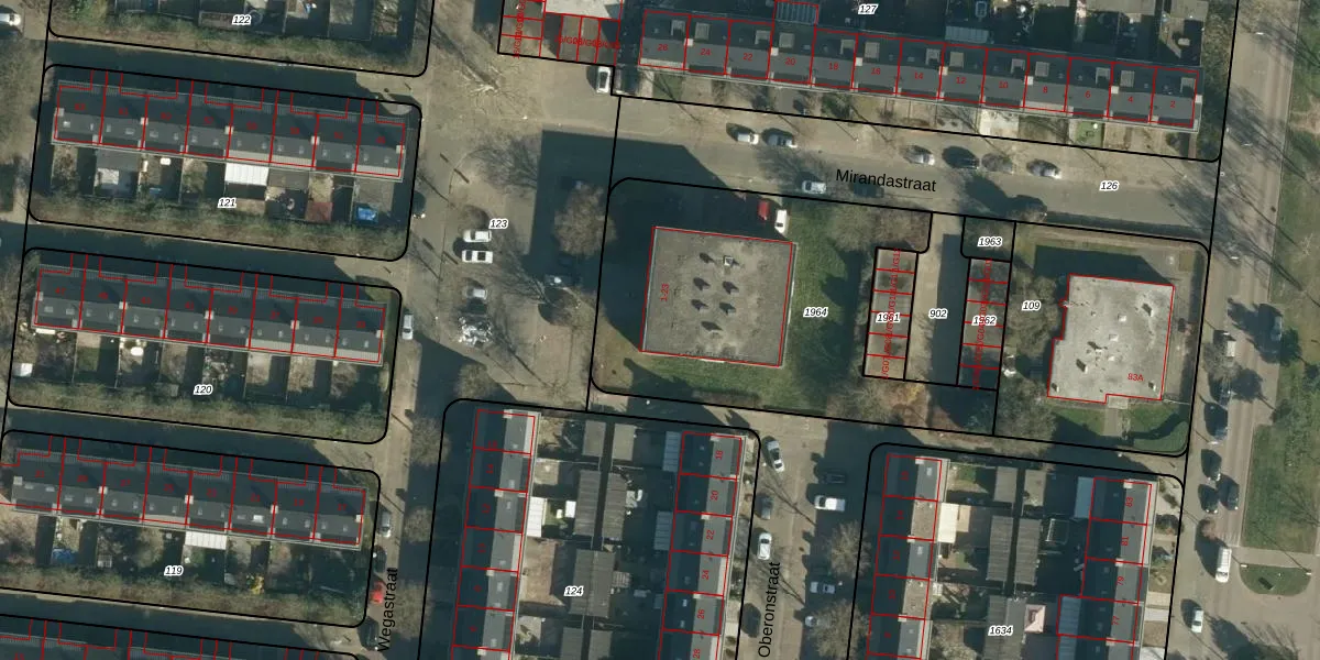 Het perceel waarop Mirandastraat 7 staat heeft een oppervlakte van 1550 m². Dit is een zeer groot perceel. De perceeloppervlakte wordt geregistreerd door het Kadaster. Gedetailleerde informatie over de maten van dit perceel kunt u vinden in het rapport Kadastrale kaart met maatvoering van Mirandastraat 7.