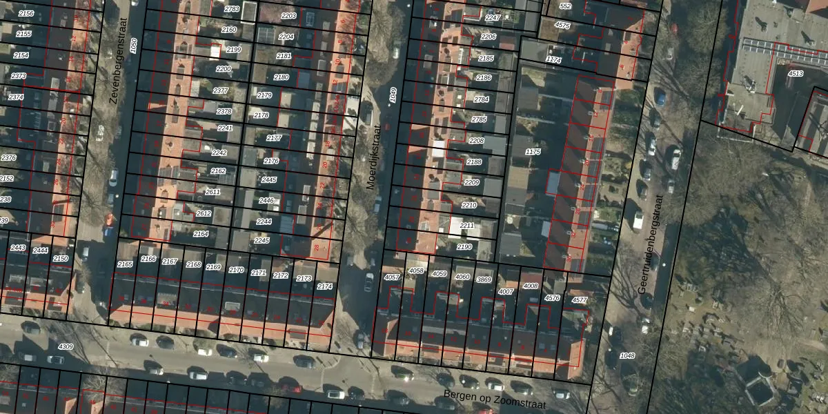 Moerdijkstraat 21 is gelegen op kadastraal perceel STR03C2210. Deze kadastrale aanduiding is uniek en wordt gebruikt door het Kadaster om eigendomsrechten en andere zakelijke rechten vast te leggen. Het perceel maakt onderdeel uit van de kadastrale gemeente Strijp.