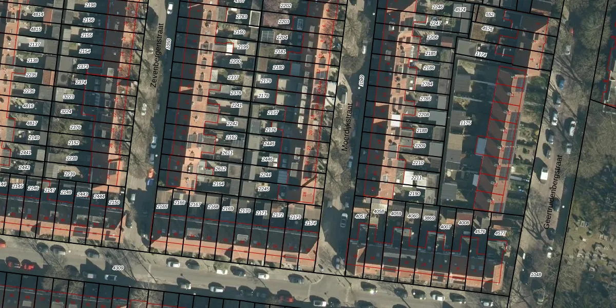 Gebruik de zoekbalk of klik op een perceel voor informatie over de adressen binnen dit perceel.