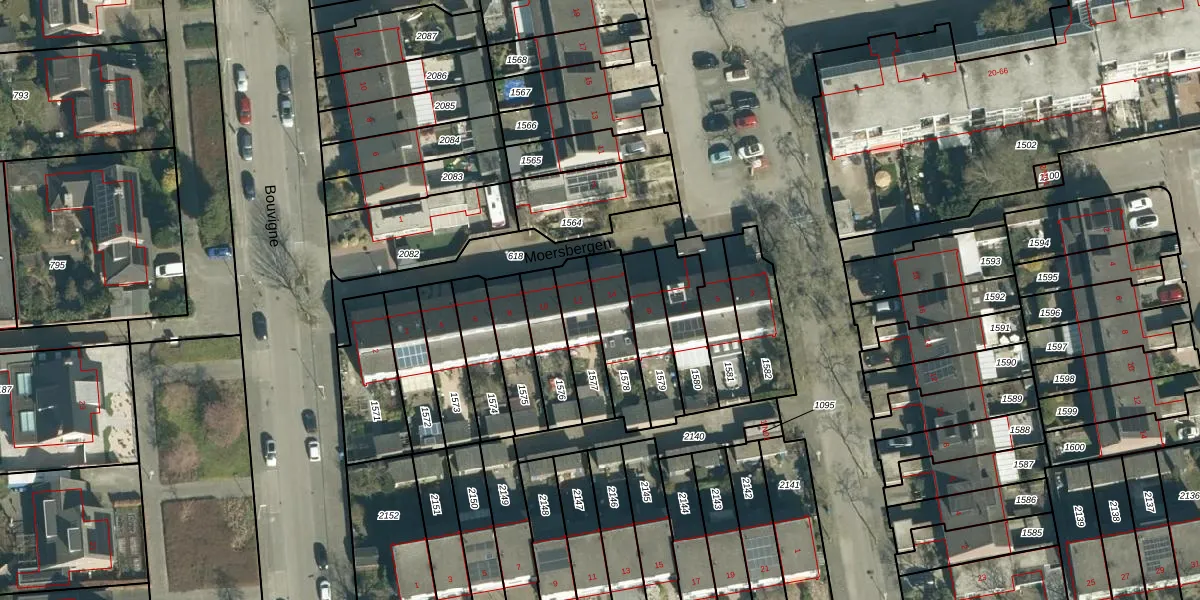 Het perceel waarop Moersbergen 14 staat heeft een oppervlakte van 168 m². Dit is een middelgroot perceel. De perceeloppervlakte wordt geregistreerd door het Kadaster. Gedetailleerde informatie over de maten van dit perceel kunt u vinden in het rapport Kadastrale kaart met maatvoering van Moersbergen 14.
