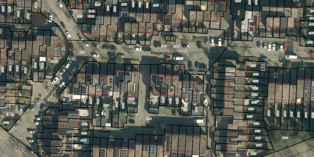 Gebruik de zoekbalk of klik op een perceel voor informatie over de adressen binnen dit perceel.
