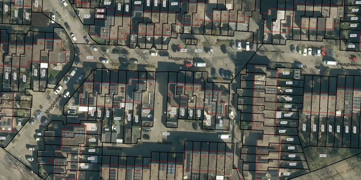 Moggendries 32-A is gelegen op kadastraal perceel TGR00C3554. Deze kadastrale aanduiding is uniek en wordt gebruikt door het Kadaster om eigendomsrechten en andere zakelijke rechten vast te leggen. Het perceel maakt onderdeel uit van de kadastrale gemeente Tongelre.