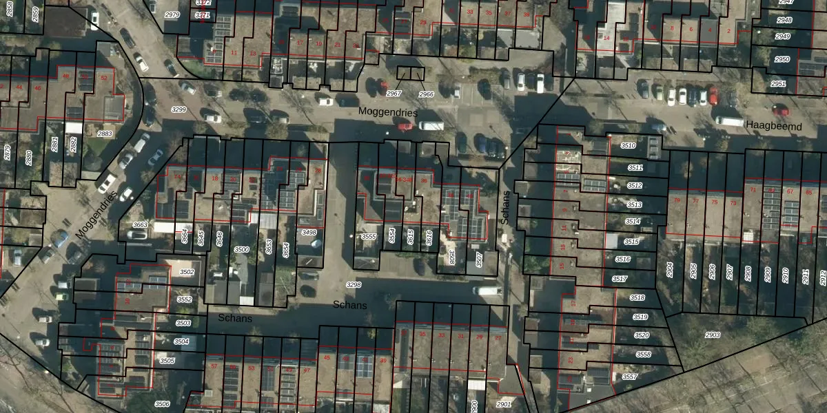 Moggendries 34-B is gelegen op kadastraal perceel TGR00C3615. Deze kadastrale aanduiding is uniek en wordt gebruikt door het Kadaster om eigendomsrechten en andere zakelijke rechten vast te leggen. Het perceel maakt onderdeel uit van de kadastrale gemeente Tongelre.