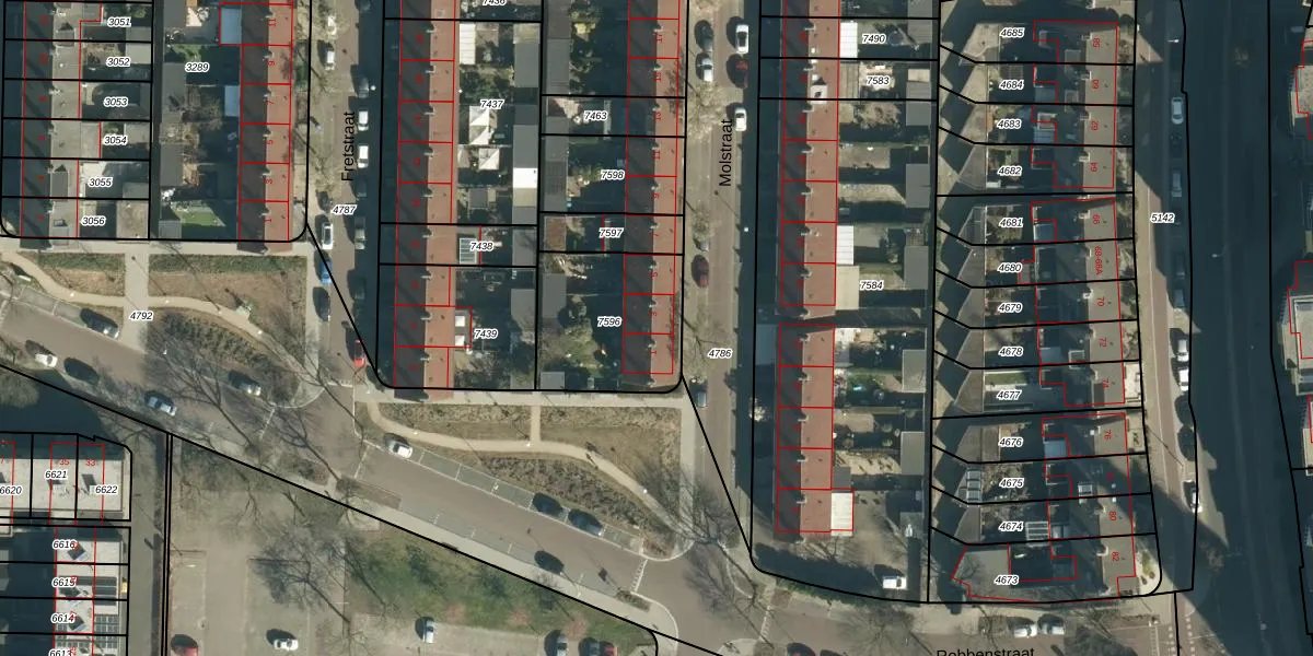 Het perceel waarop Molstraat 3 staat heeft een oppervlakte van 467 m². Dit is een groot perceel. De perceeloppervlakte wordt geregistreerd door het Kadaster. Gedetailleerde informatie over de maten van dit perceel kunt u vinden in het rapport Kadastrale kaart met maatvoering van Molstraat 3.