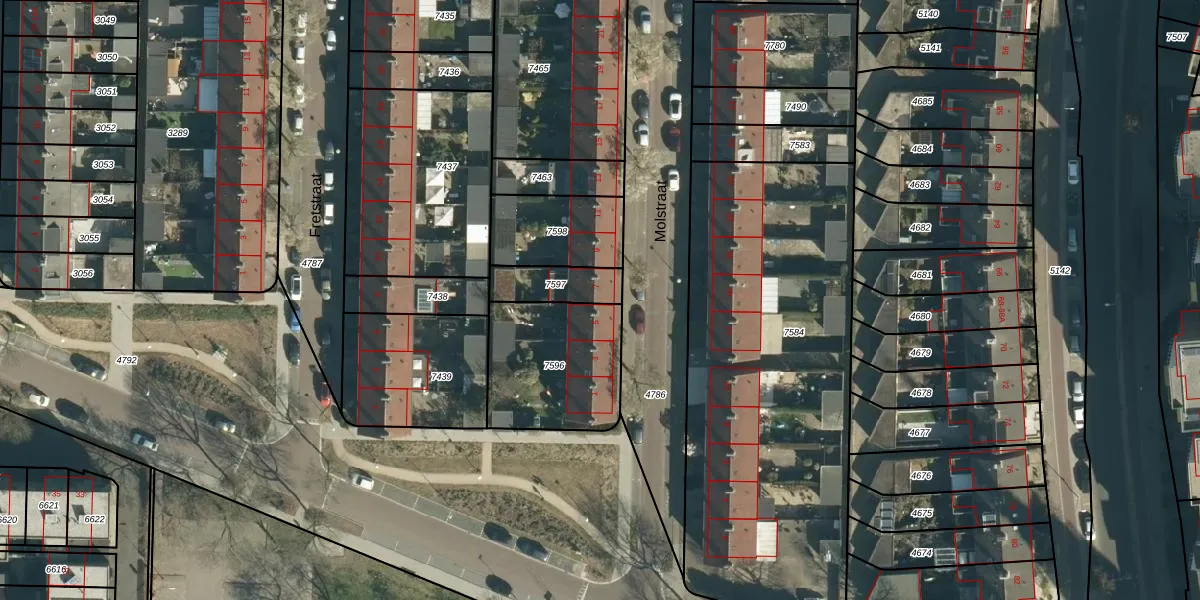Molstraat 7 is gelegen op kadastraal perceel WSL01G7597. Deze kadastrale aanduiding is uniek en wordt gebruikt door het Kadaster om eigendomsrechten en andere zakelijke rechten vast te leggen. Het perceel maakt onderdeel uit van de kadastrale gemeente Woensel.