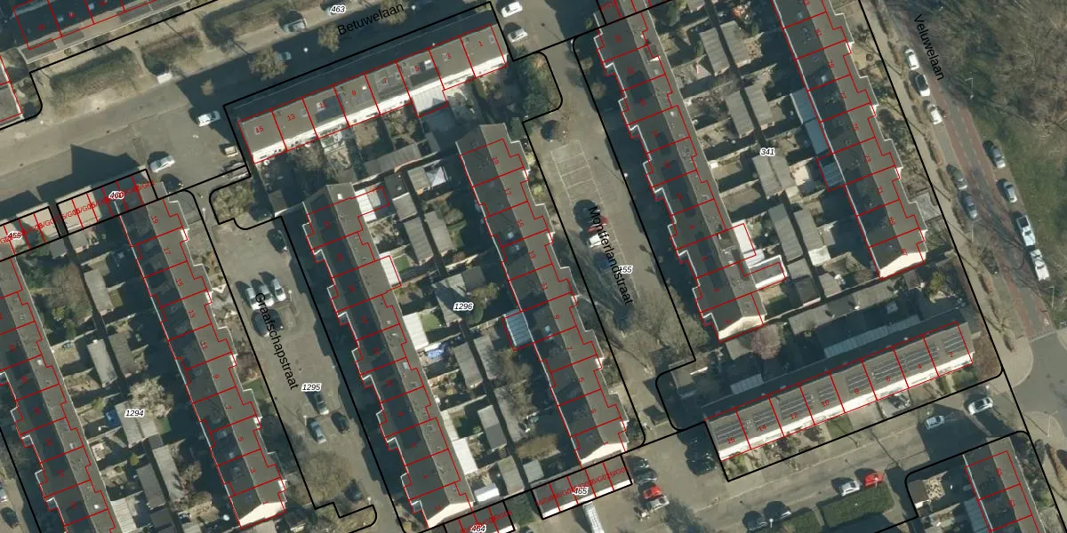 Het perceel waarop Montferlandstraat 13 staat heeft een oppervlakte van 4547 m². Dit is een zeer groot perceel. De perceeloppervlakte wordt geregistreerd door het Kadaster. Gedetailleerde informatie over de maten van dit perceel kunt u vinden in het rapport Kadastrale kaart met maatvoering van Montferlandstraat 13.