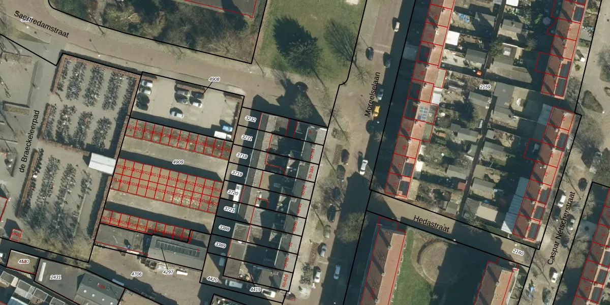 Het perceel waarop Moreelselaan 34 staat heeft een oppervlakte van 180 m². Dit is een middelgroot perceel. De perceeloppervlakte wordt geregistreerd door het Kadaster. Gedetailleerde informatie over de maten van dit perceel kunt u vinden in het rapport Kadastrale kaart met maatvoering van Moreelselaan 34.