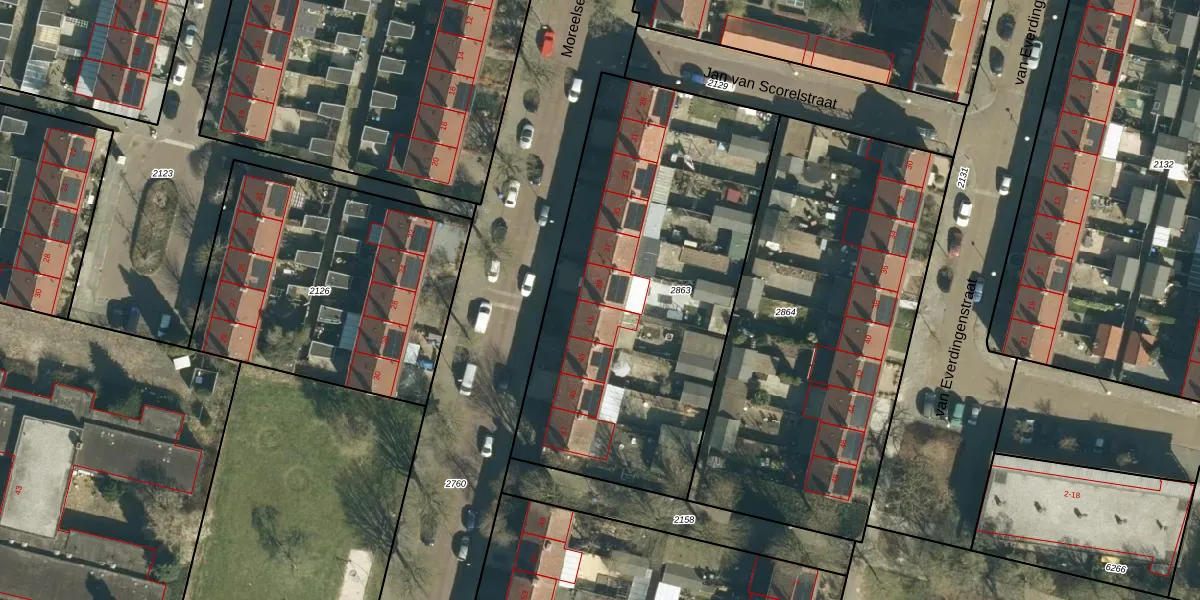 Het perceel waarop Moreelselaan 39 staat heeft een oppervlakte van 2026 m². Dit is een zeer groot perceel. De perceeloppervlakte wordt geregistreerd door het Kadaster. Gedetailleerde informatie over de maten van dit perceel kunt u vinden in het rapport Kadastrale kaart met maatvoering van Moreelselaan 39.