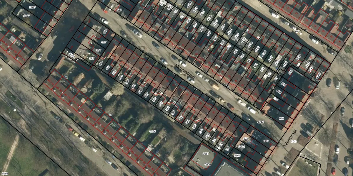 Het perceel waarop Morsestraat 20 staat heeft een oppervlakte van 100 m². Dit is een middelgroot perceel. De perceeloppervlakte wordt geregistreerd door het Kadaster. Gedetailleerde informatie over de maten van dit perceel kunt u vinden in het rapport Kadastrale kaart met maatvoering van Morsestraat 20.