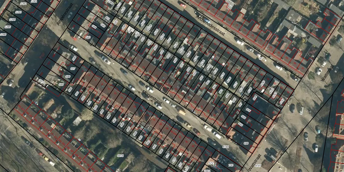 Het perceel waarop Morsestraat 21 staat heeft een oppervlakte van 101 m². Dit is een middelgroot perceel. De perceeloppervlakte wordt geregistreerd door het Kadaster. Gedetailleerde informatie over de maten van dit perceel kunt u vinden in het rapport Kadastrale kaart met maatvoering van Morsestraat 21.