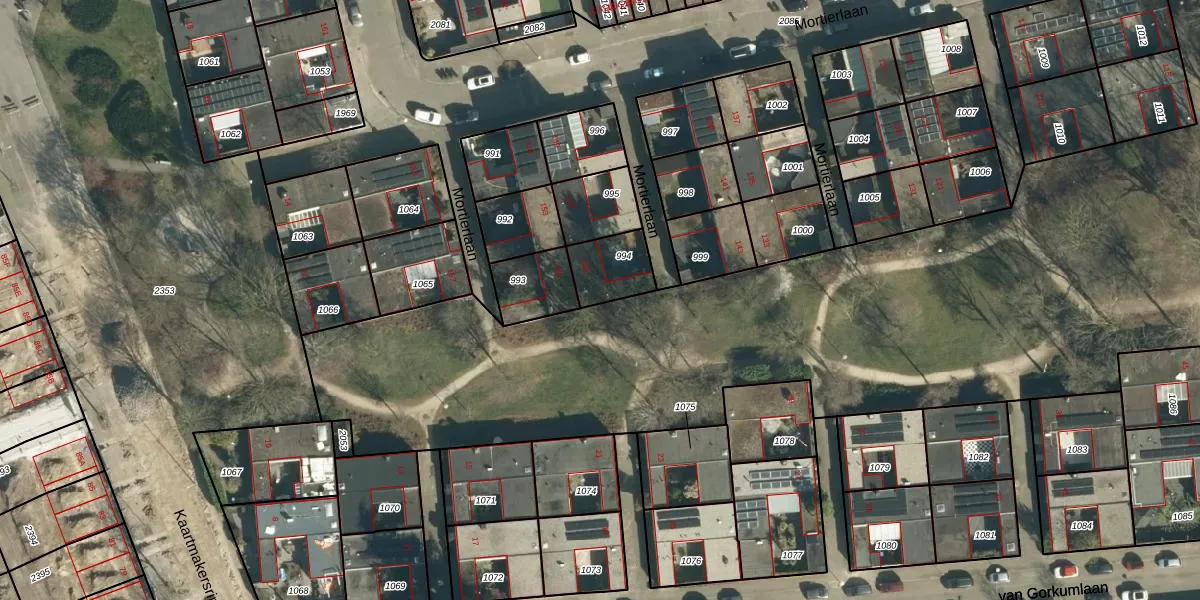 Gebruik de zoekbalk of klik op een perceel voor informatie over de adressen binnen dit perceel.