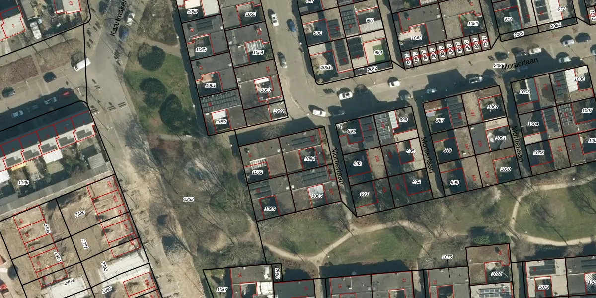 Gebruik de zoekbalk of klik op een perceel voor informatie over de adressen binnen dit perceel.