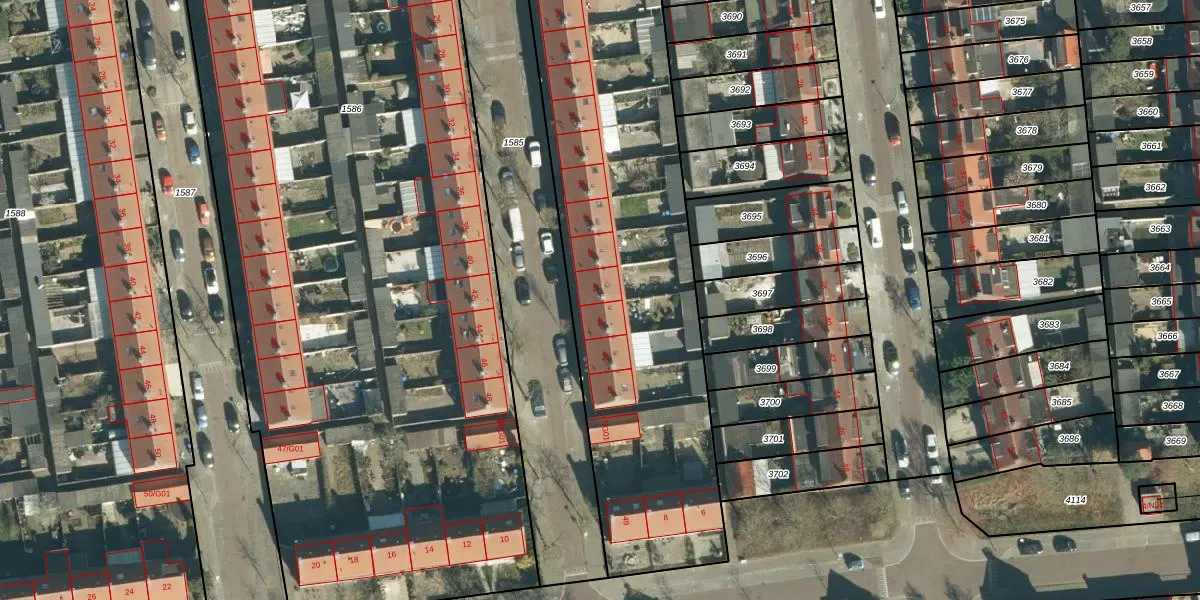 Het adres ligt op het perceel GTL01-C-3703, dat zich in de kadastrale gemeente Gestel bevindt. De oppervlakte van het perceel is 3333 m². Dat is groter dan gemiddeld in Gestel, waar de gemiddelde perceeloppervlakte op 1012,4 m² ligt. Het kleinste perceel in de kadastrale gemeente is 0 m² groot. De grootste perceeloppervlakte is 73,6 ha. Er zijn 24 adressen aanwezig op het perceel. De laatste wijziging in het de Basisregistratie Kadaster (BRK) was op 25-07-2006.