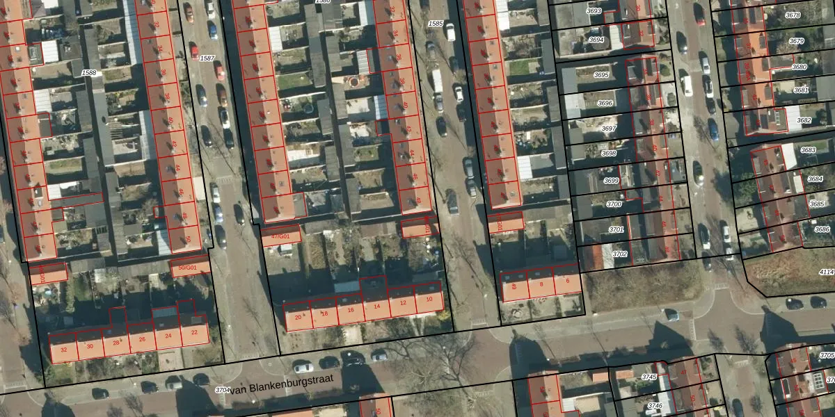 Het adres ligt op het perceel GTL01-C-1586, dat zich in de kadastrale gemeente Gestel bevindt. De oppervlakte van het perceel is 5946 m². Dat is groter dan gemiddeld in Gestel, waar de gemiddelde perceeloppervlakte op 1012,4 m² ligt. De grootste perceeloppervlakte in de kadastrale gemeente is 73,6 ha. De kleinste oppervlakte bedraagt 0 m². Op het perceel zijn 44 adressen aanwezig. De huidige grenzen van het perceel zijn digitaal in de Basisregistratie Kadaster (BRK) geregistreerd op 25-07-2006.