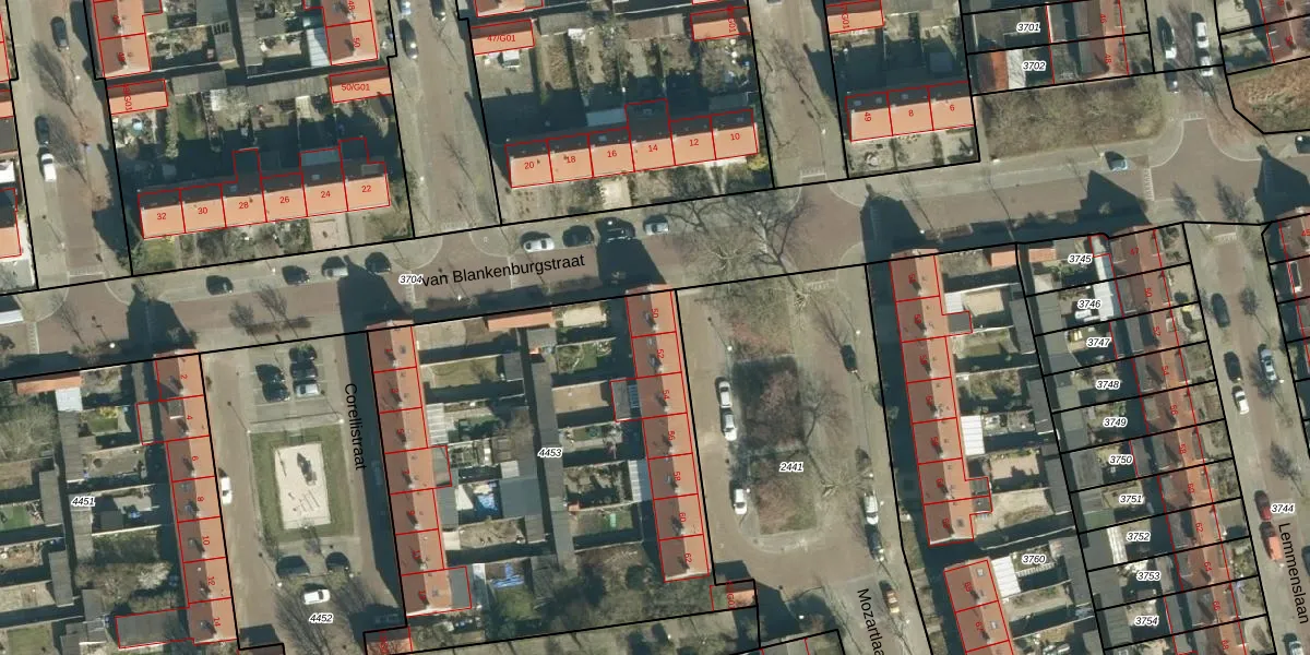 Het perceel waarop Mozartlaan 50 staat heeft een oppervlakte van 2415 m². Dit is een zeer groot perceel. De perceeloppervlakte wordt geregistreerd door het Kadaster. Gedetailleerde informatie over de maten van dit perceel kunt u vinden in het rapport Kadastrale kaart met maatvoering van Mozartlaan 50.