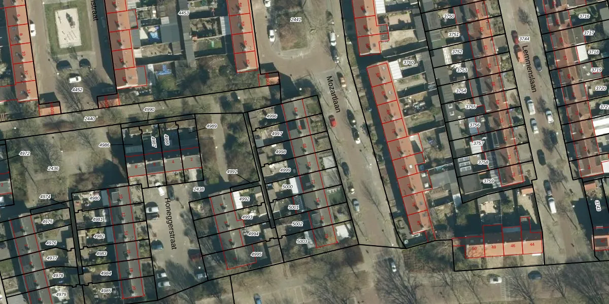 Gebruik de zoekbalk of klik op een perceel voor informatie over de adressen binnen dit perceel.