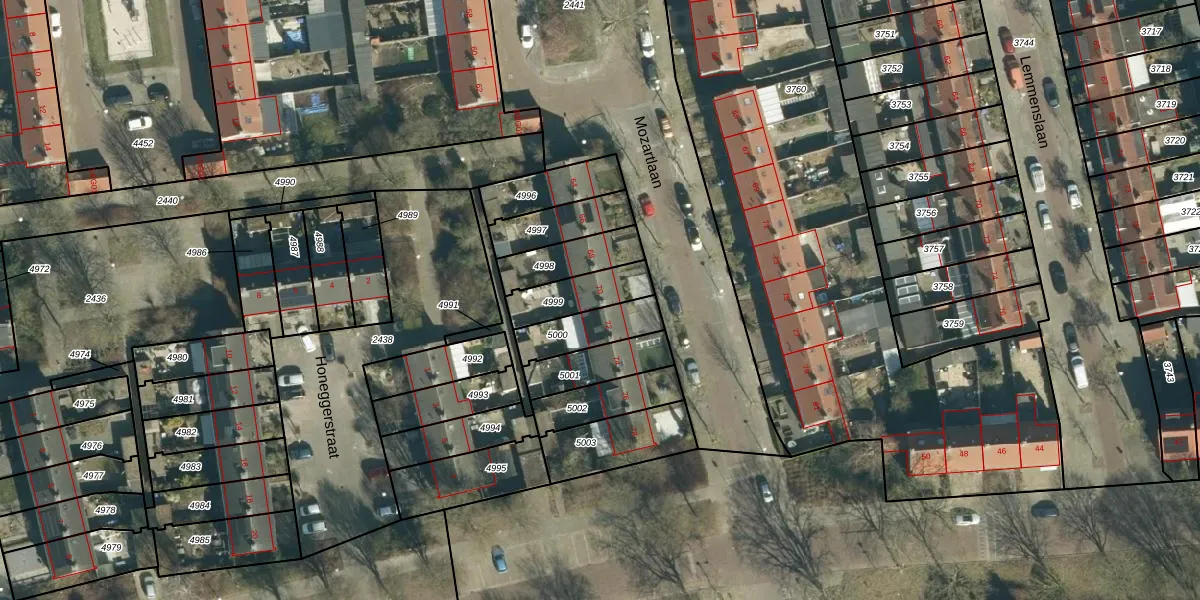 Gebruik de zoekbalk of klik op een perceel voor informatie over de adressen binnen dit perceel.
