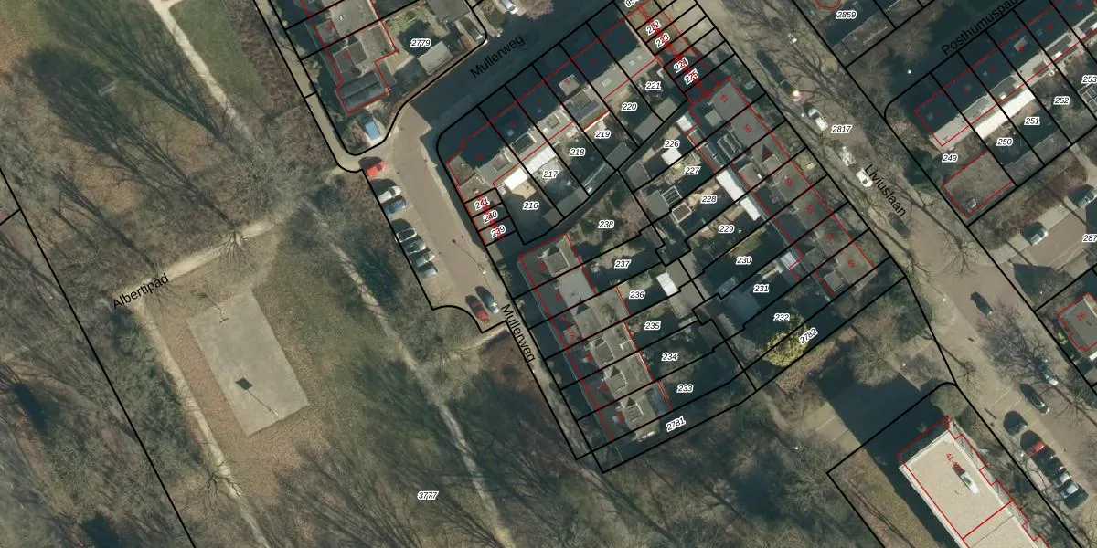 Het perceel waarop Mullerweg 13 staat heeft een oppervlakte van 282 m². Dit is een middelgroot perceel. De perceeloppervlakte wordt geregistreerd door het Kadaster. Gedetailleerde informatie over de maten van dit perceel kunt u vinden in het rapport Kadastrale kaart met maatvoering van Mullerweg 13.