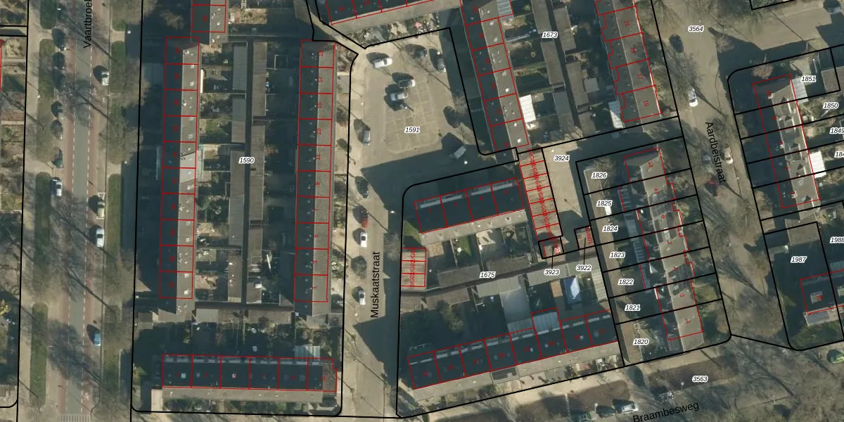 Muskaatstraat 2 is gelegen op kadastraal perceel WSL01C1675. Deze kadastrale aanduiding is uniek en wordt gebruikt door het Kadaster om eigendomsrechten en andere zakelijke rechten vast te leggen. Het perceel maakt onderdeel uit van de kadastrale gemeente Woensel.
