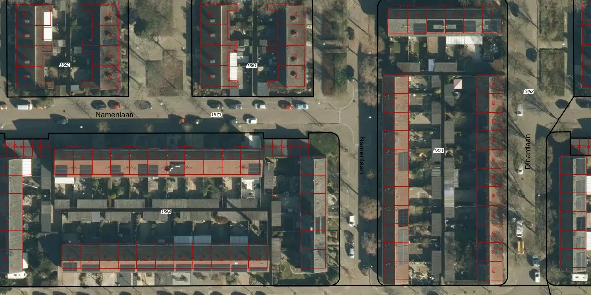 Het perceel waarop Namenlaan 11-G02 staat heeft een oppervlakte van 6228 m². Dit is een zeer groot perceel. De perceeloppervlakte wordt geregistreerd door het Kadaster. Gedetailleerde informatie over de maten van dit perceel kunt u vinden in het rapport Kadastrale kaart met maatvoering van Namenlaan 11-G02.