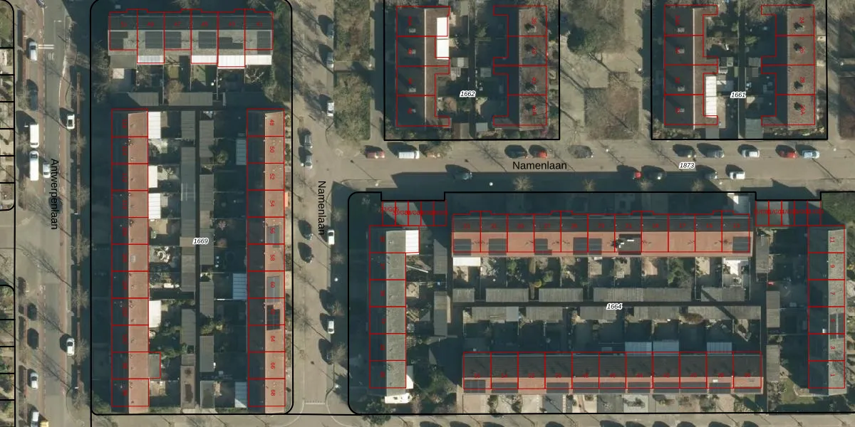 Het perceel waarop Namenlaan 33-G02 staat heeft een oppervlakte van 6228 m². Dit is een zeer groot perceel. De perceeloppervlakte wordt geregistreerd door het Kadaster. Gedetailleerde informatie over de maten van dit perceel kunt u vinden in het rapport Kadastrale kaart met maatvoering van Namenlaan 33-G02.