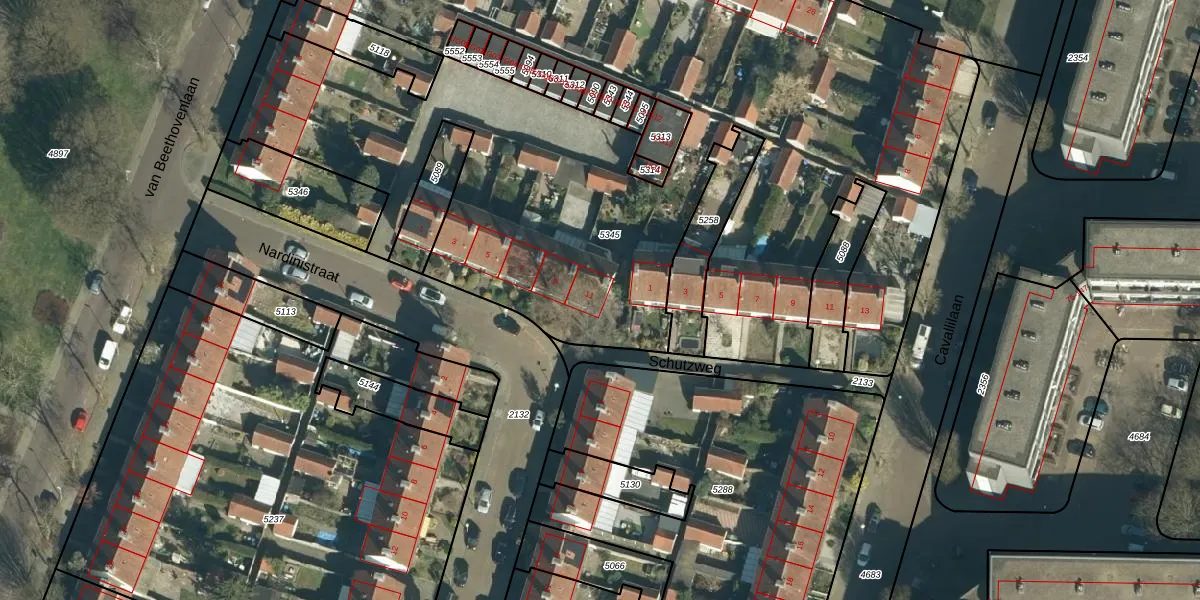 Het perceel waarop Nardinistraat 11 staat heeft een oppervlakte van 6277 m². Dit is een zeer groot perceel. De perceeloppervlakte wordt geregistreerd door het Kadaster. Gedetailleerde informatie over de maten van dit perceel kunt u vinden in het rapport Kadastrale kaart met maatvoering van Nardinistraat 11.