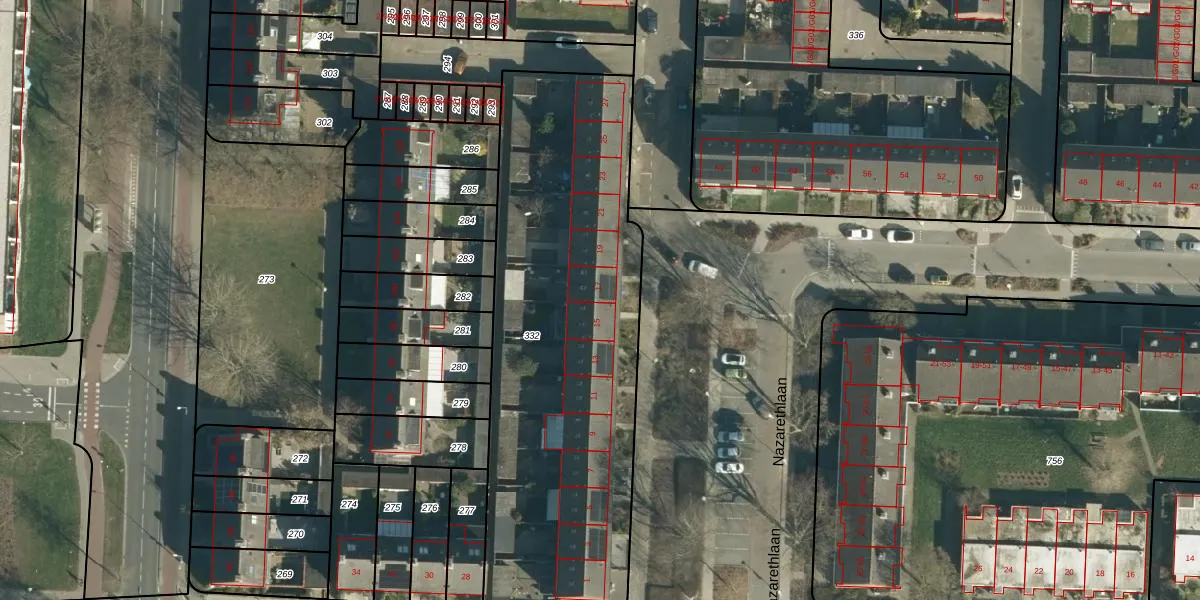Het perceel waarop Nazarethlaan 17 staat heeft een oppervlakte van 2105 m². Dit is een zeer groot perceel. De perceeloppervlakte wordt geregistreerd door het Kadaster. Gedetailleerde informatie over de maten van dit perceel kunt u vinden in het rapport Kadastrale kaart met maatvoering van Nazarethlaan 17.