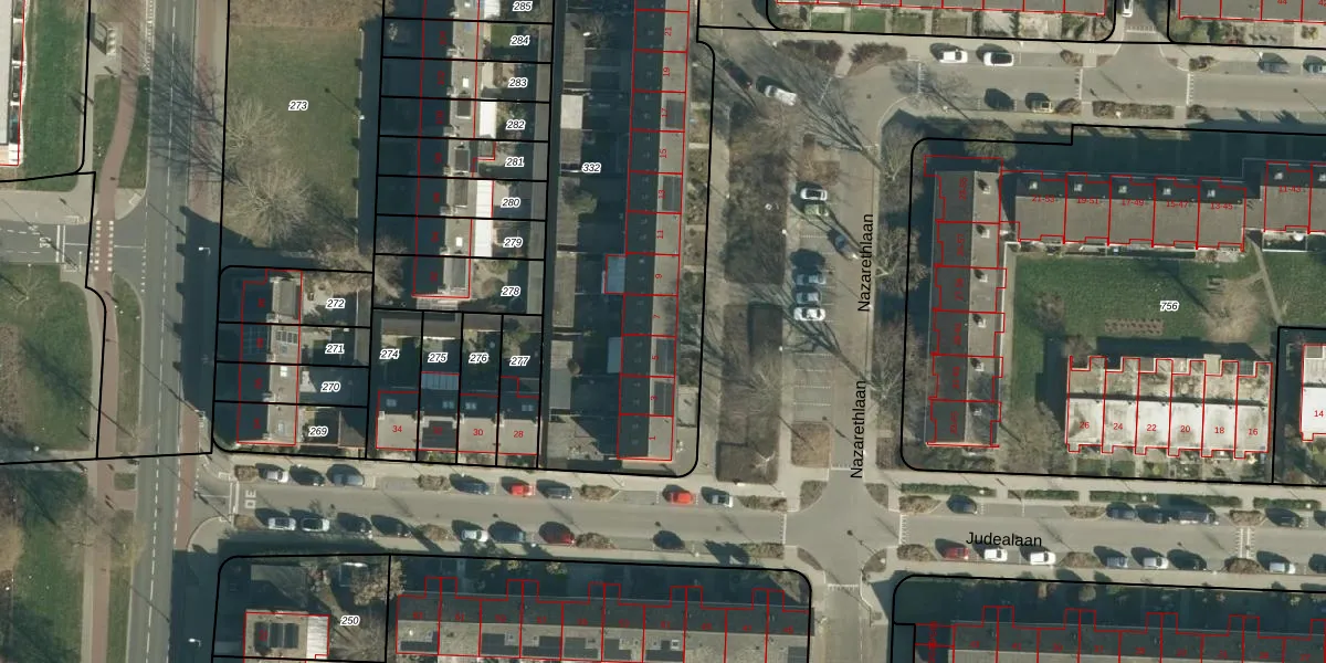Het perceel waarop Nazarethlaan 7 staat heeft een oppervlakte van 2105 m². Dit is een zeer groot perceel. De perceeloppervlakte wordt geregistreerd door het Kadaster. Gedetailleerde informatie over de maten van dit perceel kunt u vinden in het rapport Kadastrale kaart met maatvoering van Nazarethlaan 7.