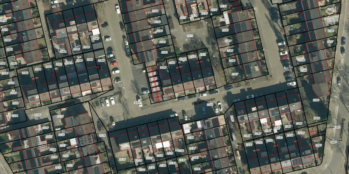 Gebruik de zoekbalk of klik op een perceel voor informatie over de adressen binnen dit perceel.