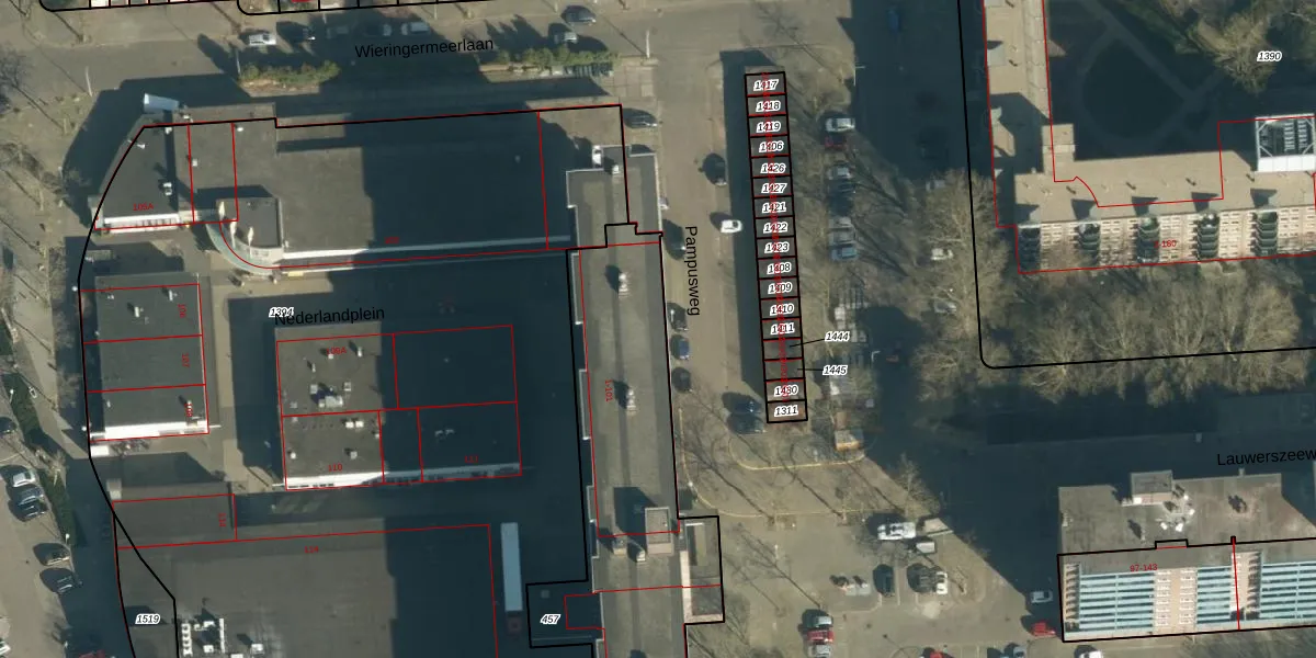 Het perceel waarop Nederlandplein 44 staat heeft een oppervlakte van 1810 m². Dit is een zeer groot perceel. De perceeloppervlakte wordt geregistreerd door het Kadaster. Gedetailleerde informatie over de maten van dit perceel kunt u vinden in het rapport Kadastrale kaart met maatvoering van Nederlandplein 44.