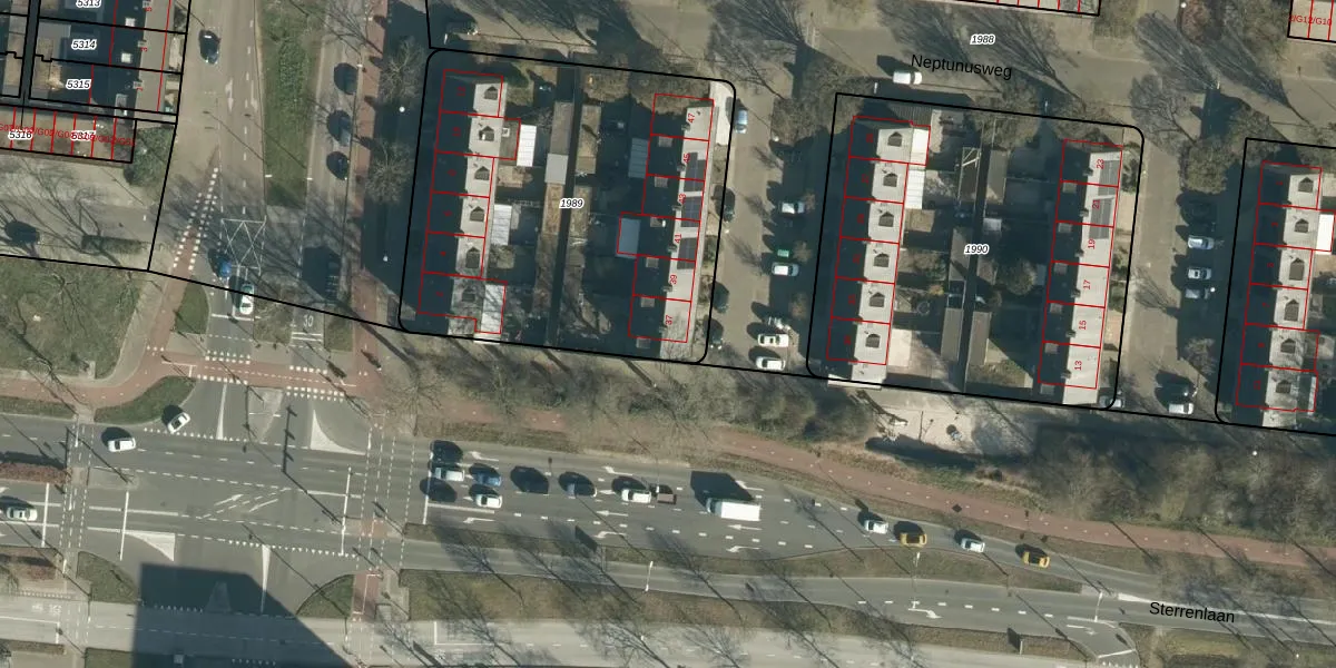 Het perceel waarop Neptunusweg 37 staat heeft een oppervlakte van 1976 m². Dit is een zeer groot perceel. De perceeloppervlakte wordt geregistreerd door het Kadaster. Gedetailleerde informatie over de maten van dit perceel kunt u vinden in het rapport Kadastrale kaart met maatvoering van Neptunusweg 37.