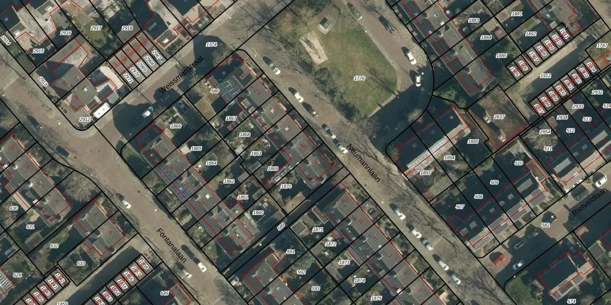 Het perceel waarop Neumannlaan 19 staat heeft een oppervlakte van 185 m². Dit is een middelgroot perceel. De perceeloppervlakte wordt geregistreerd door het Kadaster. Gedetailleerde informatie over de maten van dit perceel kunt u vinden in het rapport Kadastrale kaart met maatvoering van Neumannlaan 19.