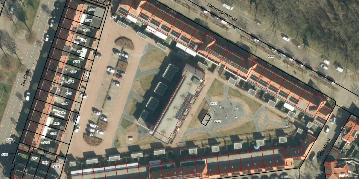 Het perceel waarop Neushoornstraat 61 staat heeft een oppervlakte van 1,1 ha. Dit is een zeer groot perceel. De perceeloppervlakte wordt geregistreerd door het Kadaster. Gedetailleerde informatie over de maten van dit perceel kunt u vinden in het rapport Kadastrale kaart met maatvoering van Neushoornstraat 61.