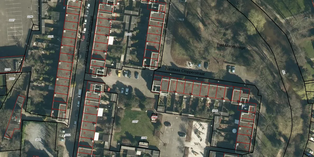 Het perceel waarop Nicolaas Clopperstraat 25 staat heeft een oppervlakte van 2170 m². Dit is een zeer groot perceel. De perceeloppervlakte wordt geregistreerd door het Kadaster. Gedetailleerde informatie over de maten van dit perceel kunt u vinden in het rapport Kadastrale kaart met maatvoering van Nicolaas Clopperstraat 25.