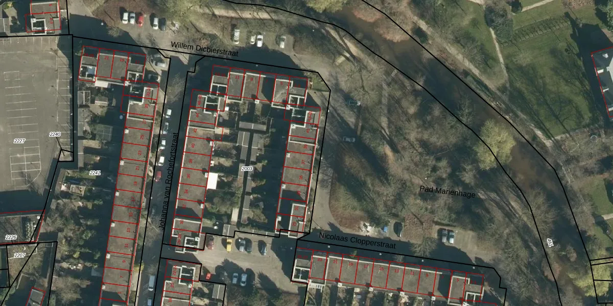 Het perceel waarop Nicolaas Clopperstraat 39 staat heeft een oppervlakte van 2660 m². Dit is een zeer groot perceel. De perceeloppervlakte wordt geregistreerd door het Kadaster. Gedetailleerde informatie over de maten van dit perceel kunt u vinden in het rapport Kadastrale kaart met maatvoering van Nicolaas Clopperstraat 39.