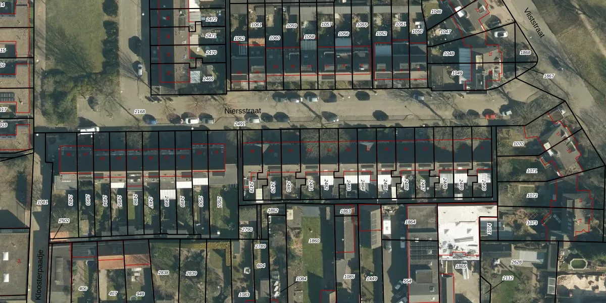 Niersstraat 23 is gelegen op kadastraal perceel WSL01T2481. Deze kadastrale aanduiding is uniek en wordt gebruikt door het Kadaster om eigendomsrechten en andere zakelijke rechten vast te leggen. Het perceel maakt onderdeel uit van de kadastrale gemeente Woensel.