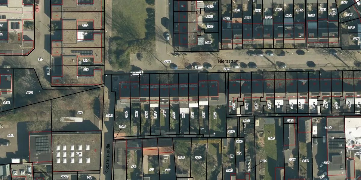 Niersstraat 37 is gelegen op kadastraal perceel WSL01T2498. Deze kadastrale aanduiding is uniek en wordt gebruikt door het Kadaster om eigendomsrechten en andere zakelijke rechten vast te leggen. Het perceel maakt onderdeel uit van de kadastrale gemeente Woensel.