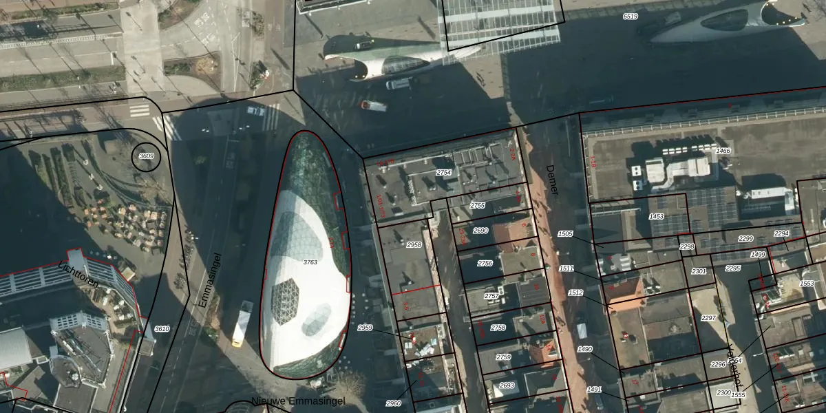 Nieuwe Emmasingel 1-55 is gelegen op kadastraal perceel EHV00D2754. Deze kadastrale aanduiding is uniek en wordt gebruikt door het Kadaster om eigendomsrechten en andere zakelijke rechten vast te leggen. Het perceel maakt onderdeel uit van de kadastrale gemeente Eindhoven.
