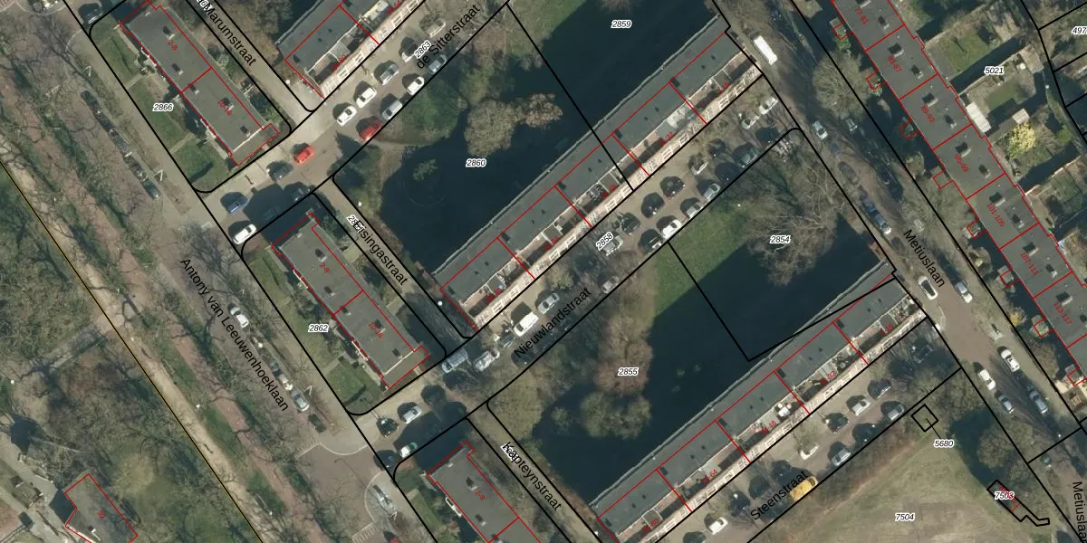 Het perceel waarop Nieuwlandstraat 52 staat heeft een oppervlakte van 1744 m². Dit is een zeer groot perceel. De perceeloppervlakte wordt geregistreerd door het Kadaster. Gedetailleerde informatie over de maten van dit perceel kunt u vinden in het rapport Kadastrale kaart met maatvoering van Nieuwlandstraat 52.