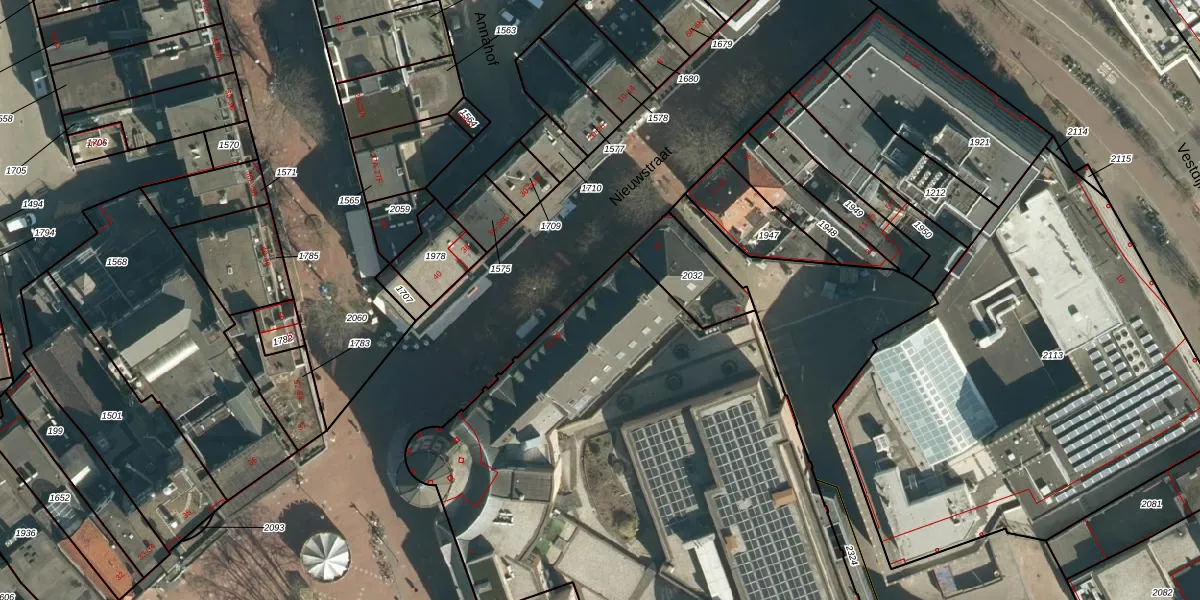 Het perceel waarop Nieuwstraat 23 staat heeft een oppervlakte van 2,0 ha. Dit is een zeer groot perceel. De perceeloppervlakte wordt geregistreerd door het Kadaster. Gedetailleerde informatie over de maten van dit perceel kunt u vinden in het rapport Kadastrale kaart met maatvoering van Nieuwstraat 23.