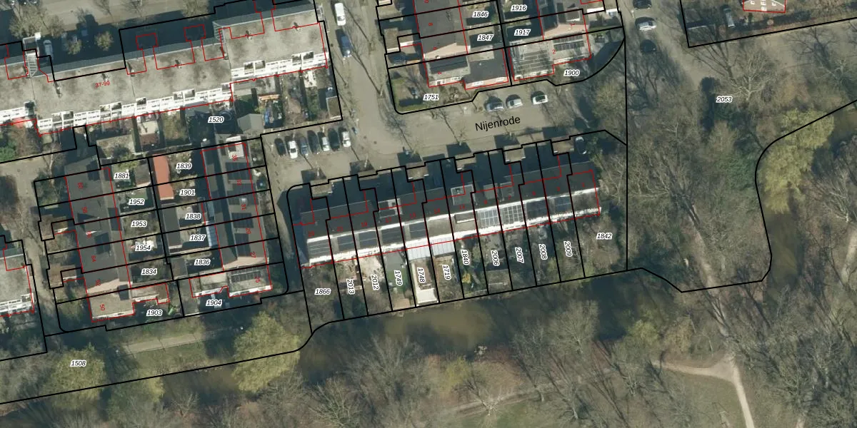 Het perceel waarop Nijenrode 13 staat heeft een oppervlakte van 189 m². Dit is een middelgroot perceel. De perceeloppervlakte wordt geregistreerd door het Kadaster. Gedetailleerde informatie over de maten van dit perceel kunt u vinden in het rapport Kadastrale kaart met maatvoering van Nijenrode 13.