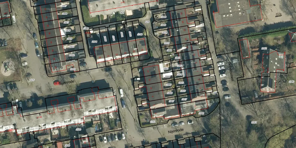 Gebruik de zoekbalk of klik op een perceel voor informatie over de adressen binnen dit perceel.