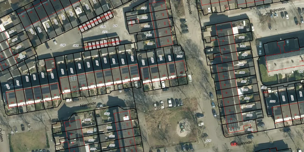 Het perceel waarop Nijenrode 141 staat heeft een oppervlakte van 152 m². Dit is een middelgroot perceel. De perceeloppervlakte wordt geregistreerd door het Kadaster. Gedetailleerde informatie over de maten van dit perceel kunt u vinden in het rapport Kadastrale kaart met maatvoering van Nijenrode 141.