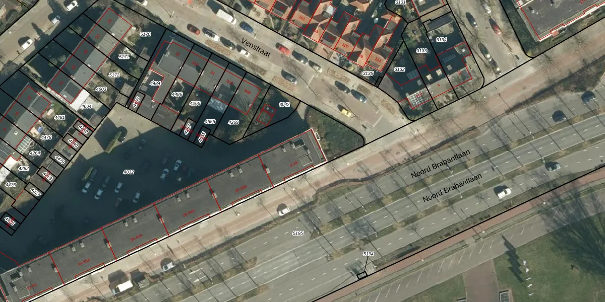Noord Brabantlaan 16 is gelegen op kadastraal perceel STR03C4032. Deze kadastrale aanduiding is uniek en wordt gebruikt door het Kadaster om eigendomsrechten en andere zakelijke rechten vast te leggen. Het perceel maakt onderdeel uit van de kadastrale gemeente Strijp.