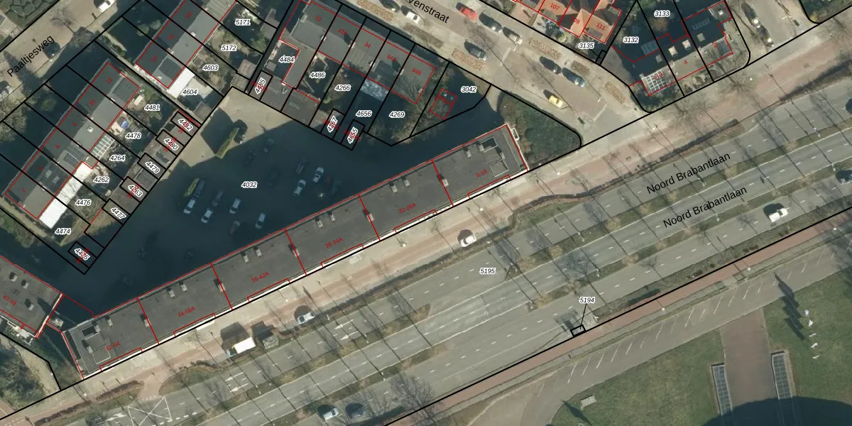 Het perceel waarop Noord Brabantlaan 20-A staat heeft een oppervlakte van 4634 m². Dit is een zeer groot perceel. De perceeloppervlakte wordt geregistreerd door het Kadaster. Gedetailleerde informatie over de maten van dit perceel kunt u vinden in het rapport Kadastrale kaart met maatvoering van Noord Brabantlaan 20-A.