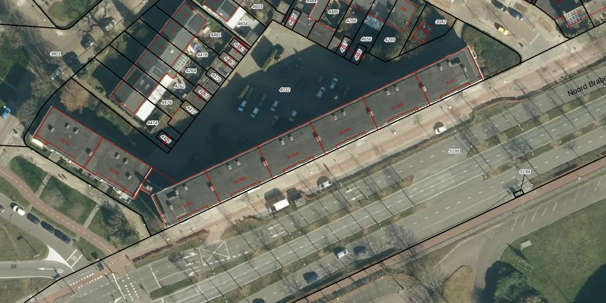 Noord Brabantlaan 38-A is gelegen op kadastraal perceel STR03C4032. Deze kadastrale aanduiding is uniek en wordt gebruikt door het Kadaster om eigendomsrechten en andere zakelijke rechten vast te leggen. Het perceel maakt onderdeel uit van de kadastrale gemeente Strijp.